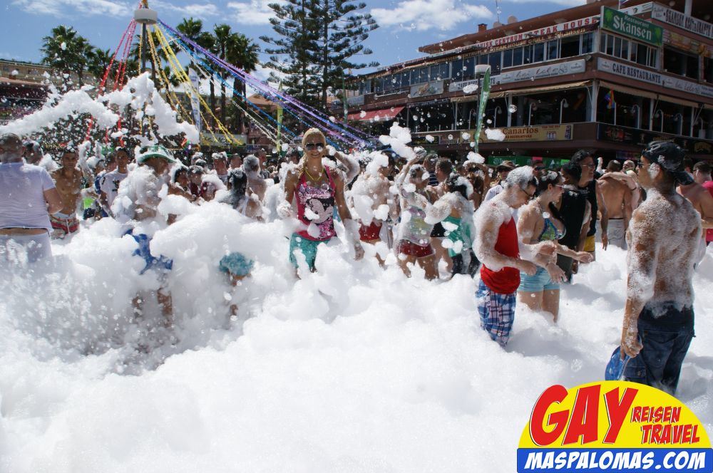 Eines der letzten großen Events der Maspalomas Pride 2014 - Die Foam Party vor der Bühne...