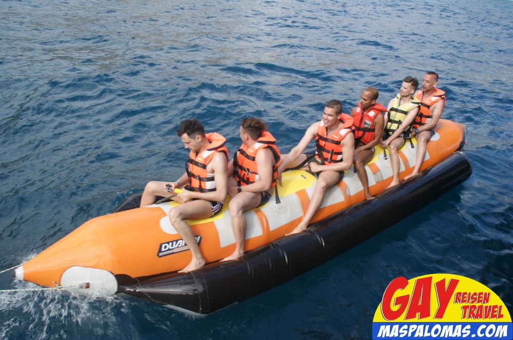 Wie immer ging es vom Hafen (Puerto Rico - Gran Canaria) entlang der Küste Richtung Puerto de Mogan - Nach einem langem Stopp und ausgiebig Zeit zum Schwimmen und Banana Boat fahren (inklusive), ging es dann wieder zurück nach Puerto Rico und mit dem Bus nach Playa del Ingles...